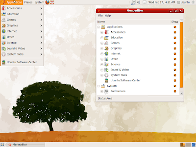 The screenshot also shows the new Edubuntu Menu Editor.